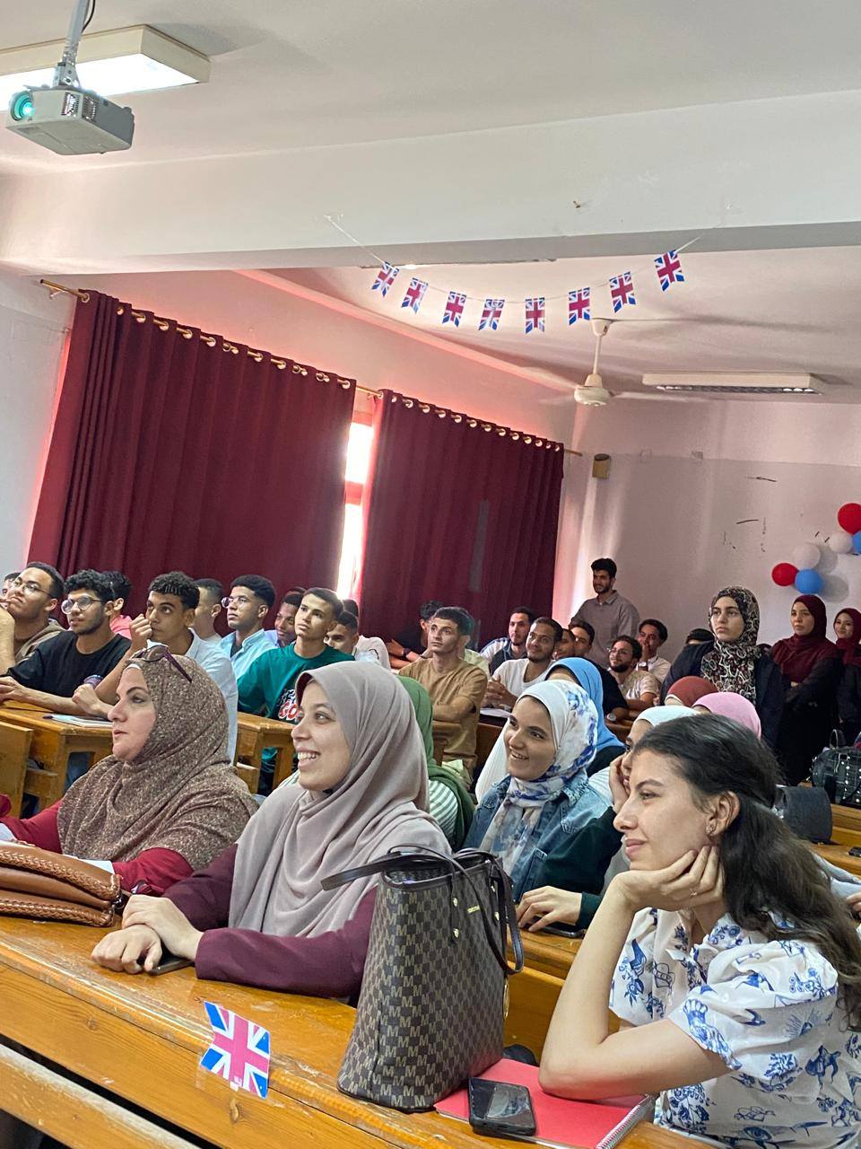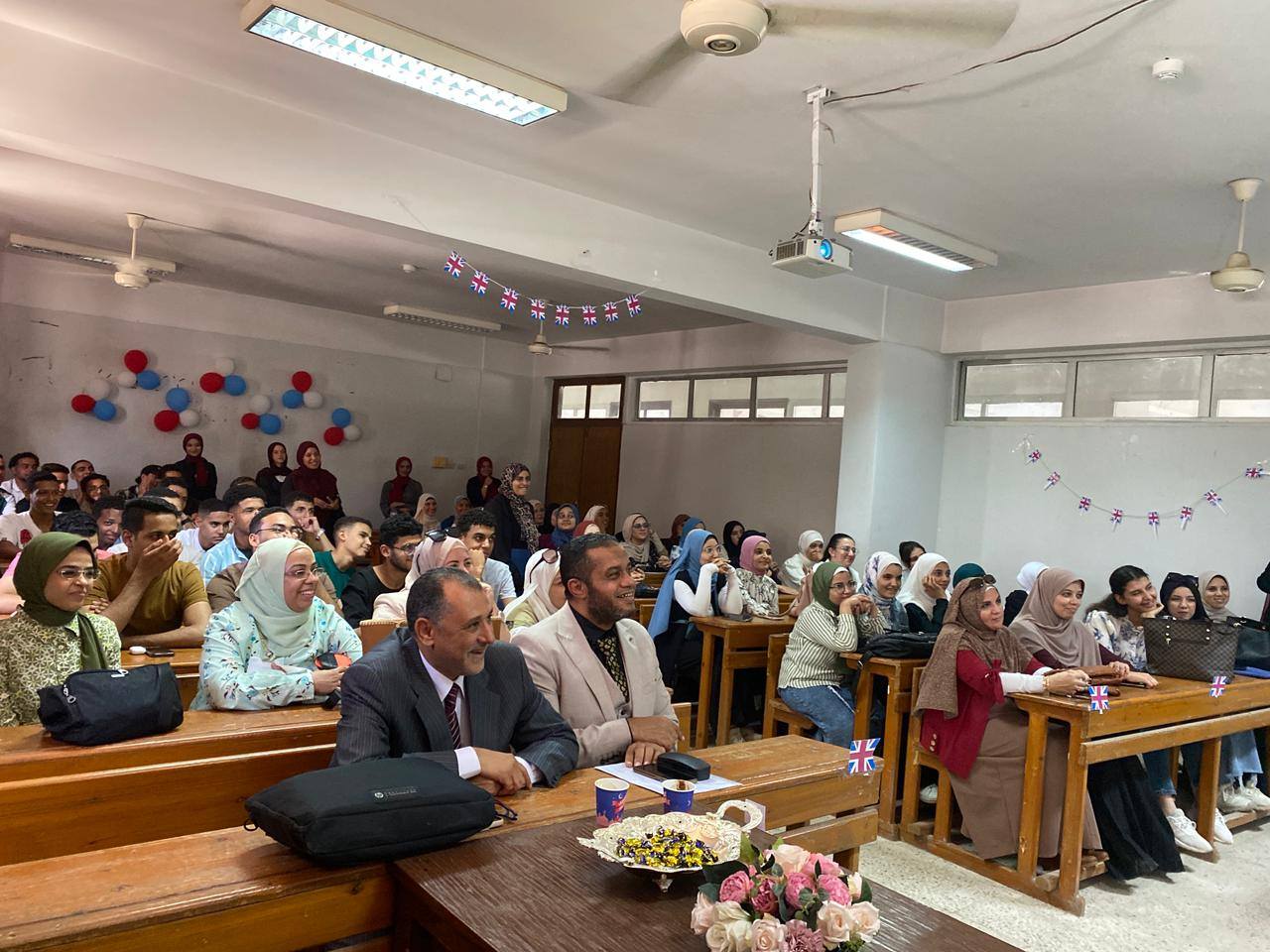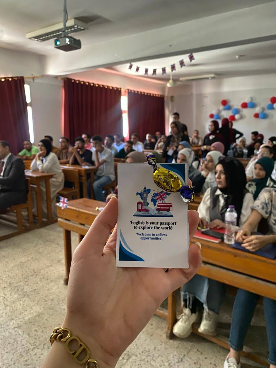 وتتوجه إدارة الكلية بخالص الشكر والتقدير لمعاوني قسم اللغة الإنجليزية ولأبنائها من الطلاب الذين قاموا بتنظيم هذه الاحتفالية الرائعة.