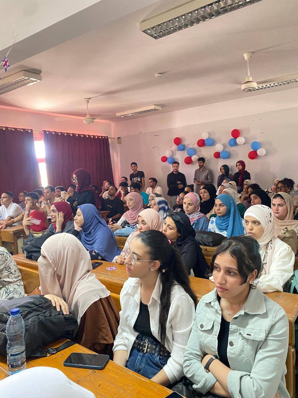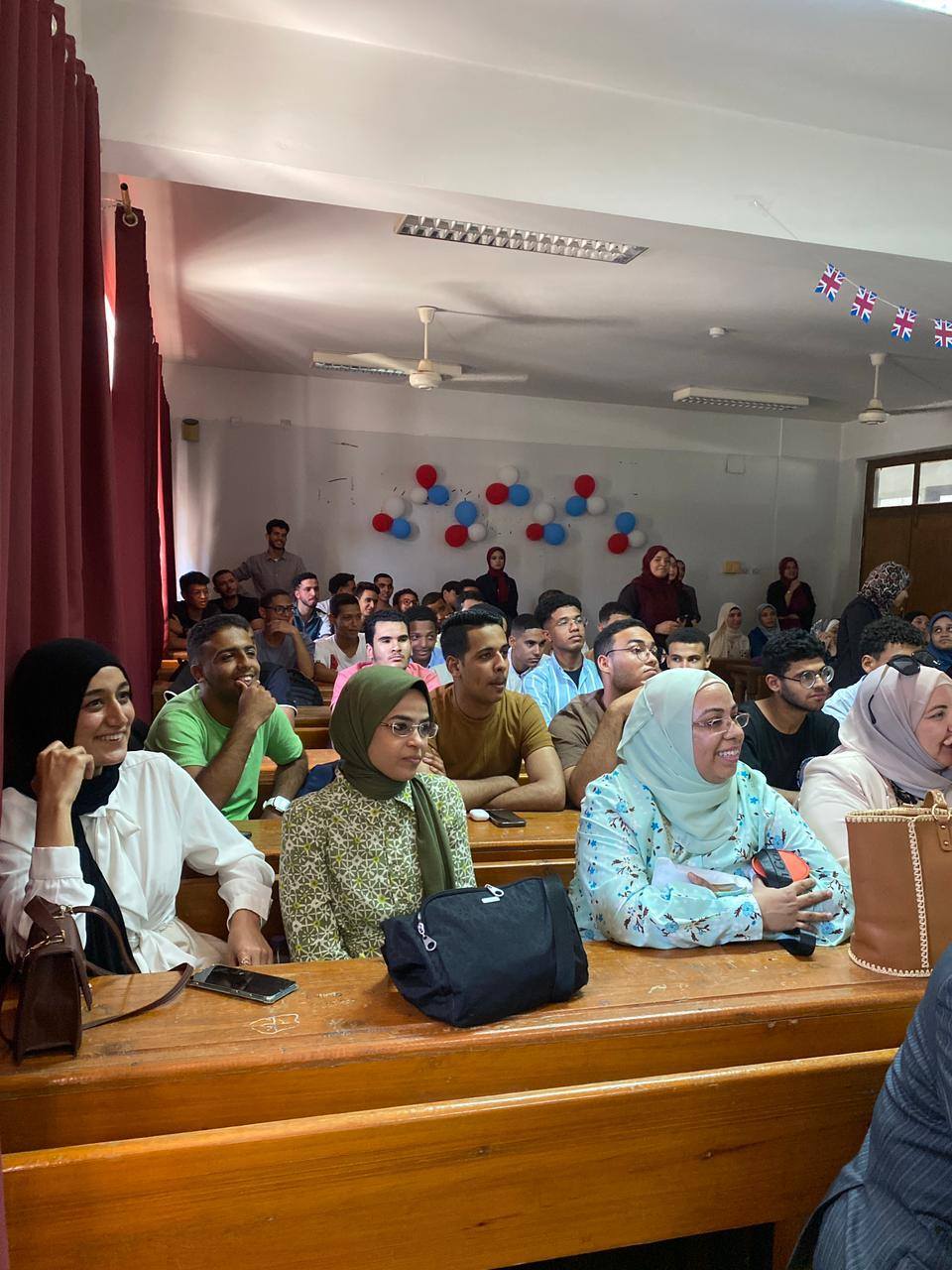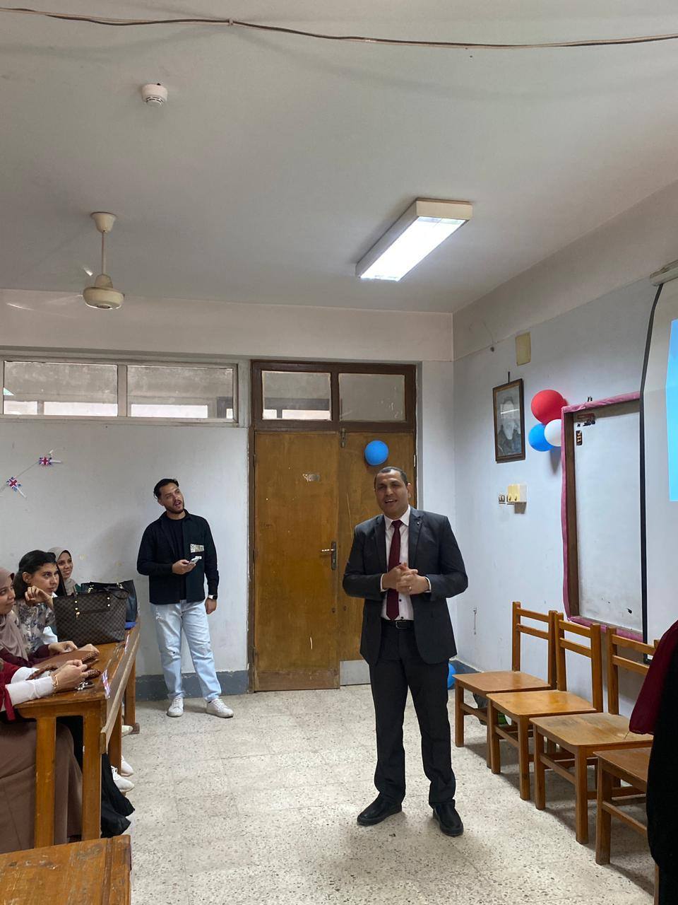 أعقب ذلك عرض مصوّر قدّمه الأستاذ الدكتور/ سعودي صادق، تضمّن التعريف بأعضاء هيئة التدريس ومعاونيهم، إلى جانب عرضٍ شاملٍ تناول فرص التوظيف وآفاق العمل المستقبلية لخريجي قسم اللغة الإنجليزية، ثم جاءت فقرة أ. أماني أشرف، وأ. مريم فائق، اللتان استعرضتا أنشطة طلاب القسم خلال العام الماضي، ودعتا الطلاب الجدد للمشاركة الفاعلة في مختلف الأنشطة.