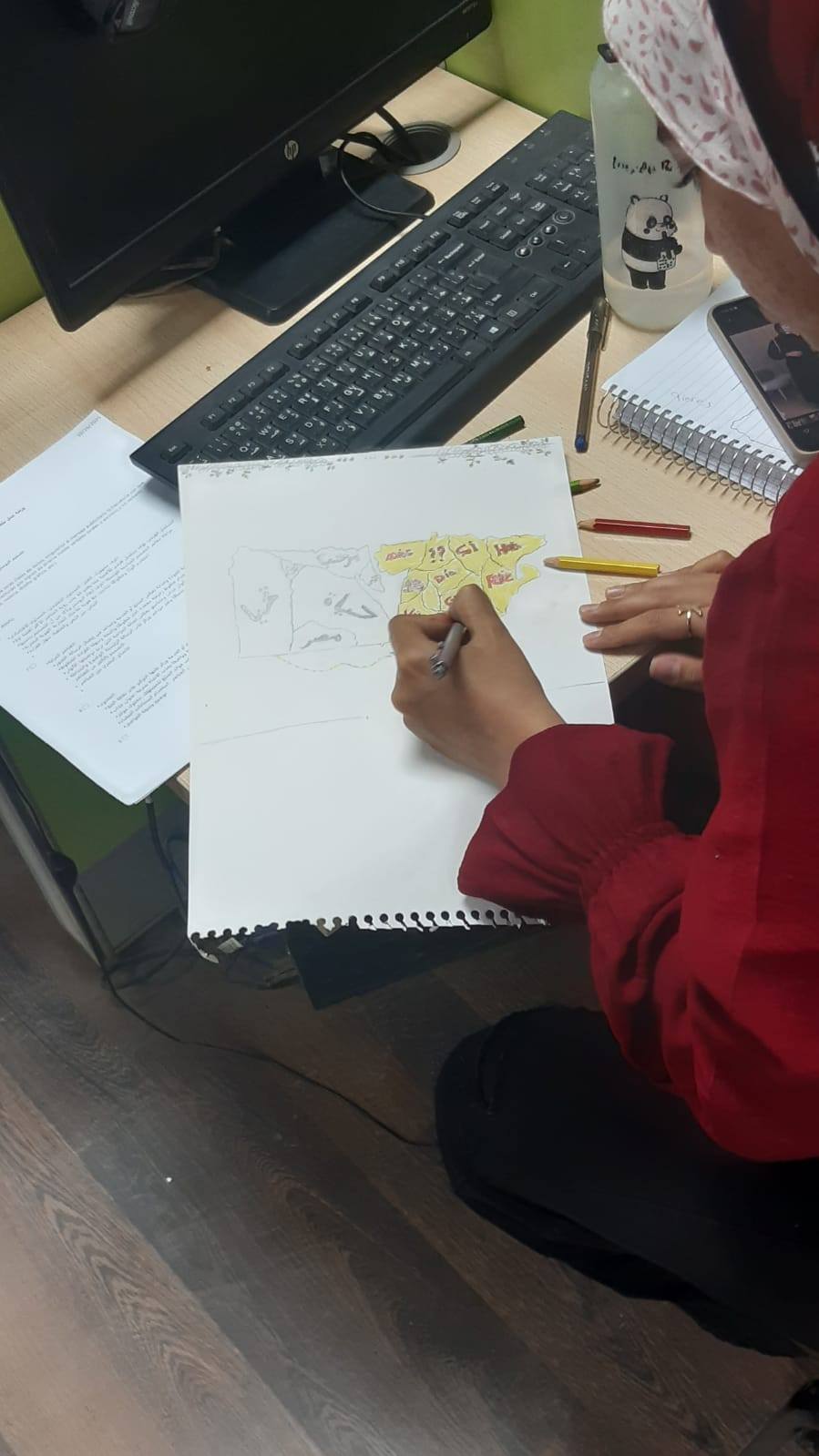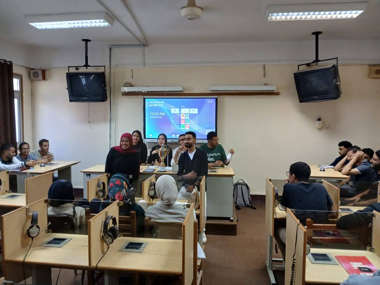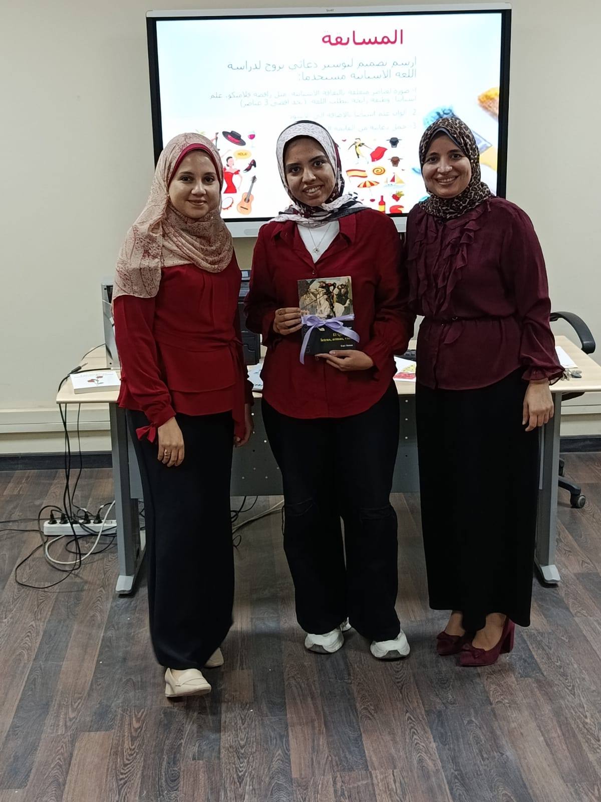 وقد استُهلت الورشة بكلمة للأستاذة الدكتورة/ إيمان خليفة رحّبت فيها بالحضور، معبّرةً عن سعادتها بمشاركة الطلاب في هذه الفعالية، ومؤكّدةً أهمية الدمج بين الإبداع الفني وتنمية المهارات اللغوية، باعتبار هذا التكامل ركيزةً أساسية في إعداد طالب الألسن.