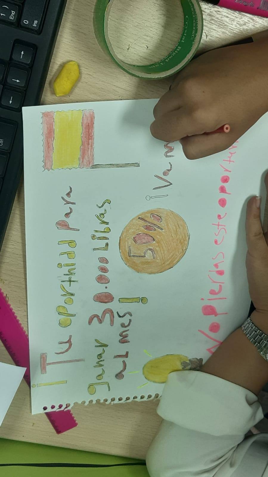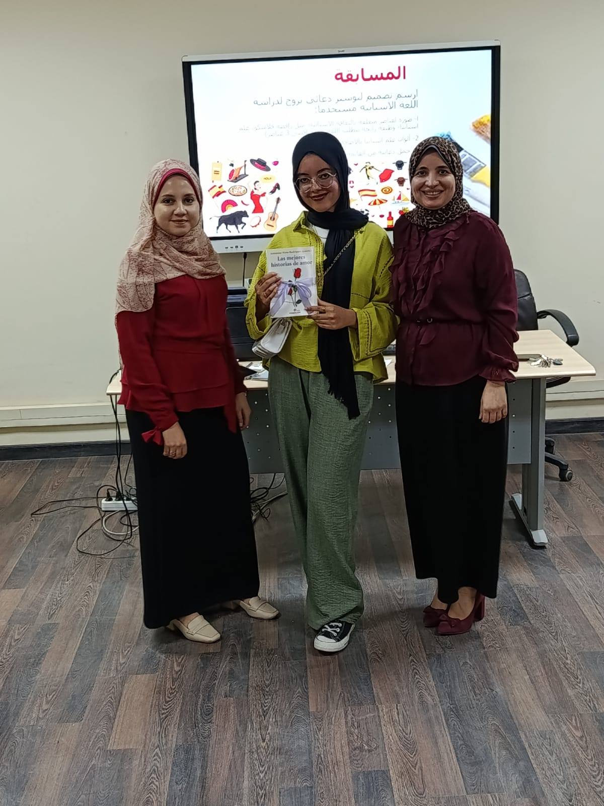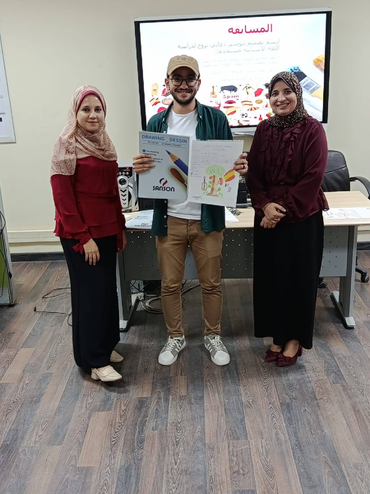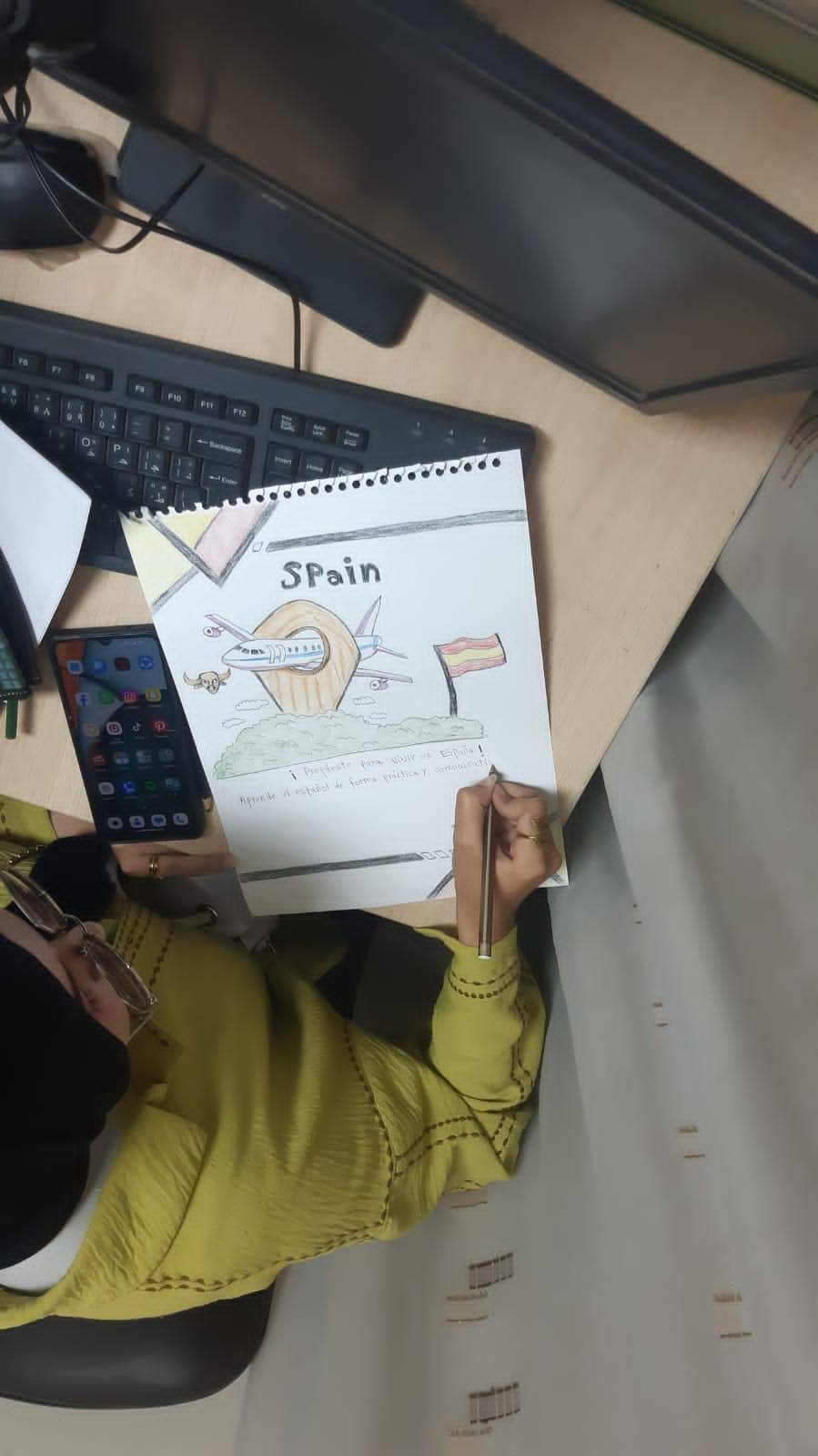 أما الجزء الثاني، فقد خُصّص لتطبيق عملي تمثّل في مسابقة لتصميم بوستر دعائي يهدف إلى التشجيع على دراسة اللغة الإسبانية، حيث أبدع الطلاب في عرض أفكارهم وتوظيف مهاراتهم الفنية باستخدام الألوان والخامات المختلفة.