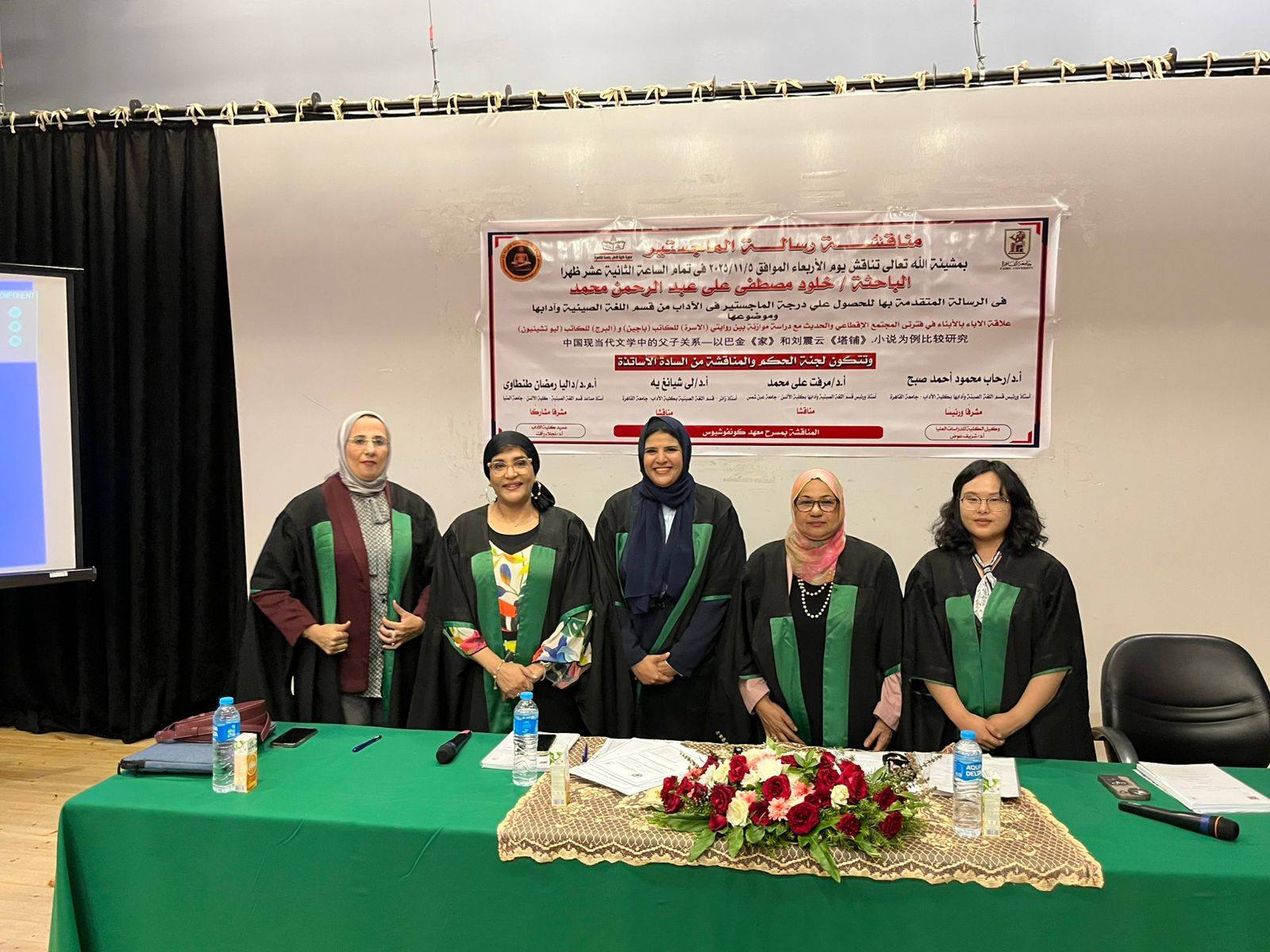 كلية الألسن بجامعة المنيا تحتفي بأول معيدة بقسم اللغة الصينية تناقش رسالة الماجستير